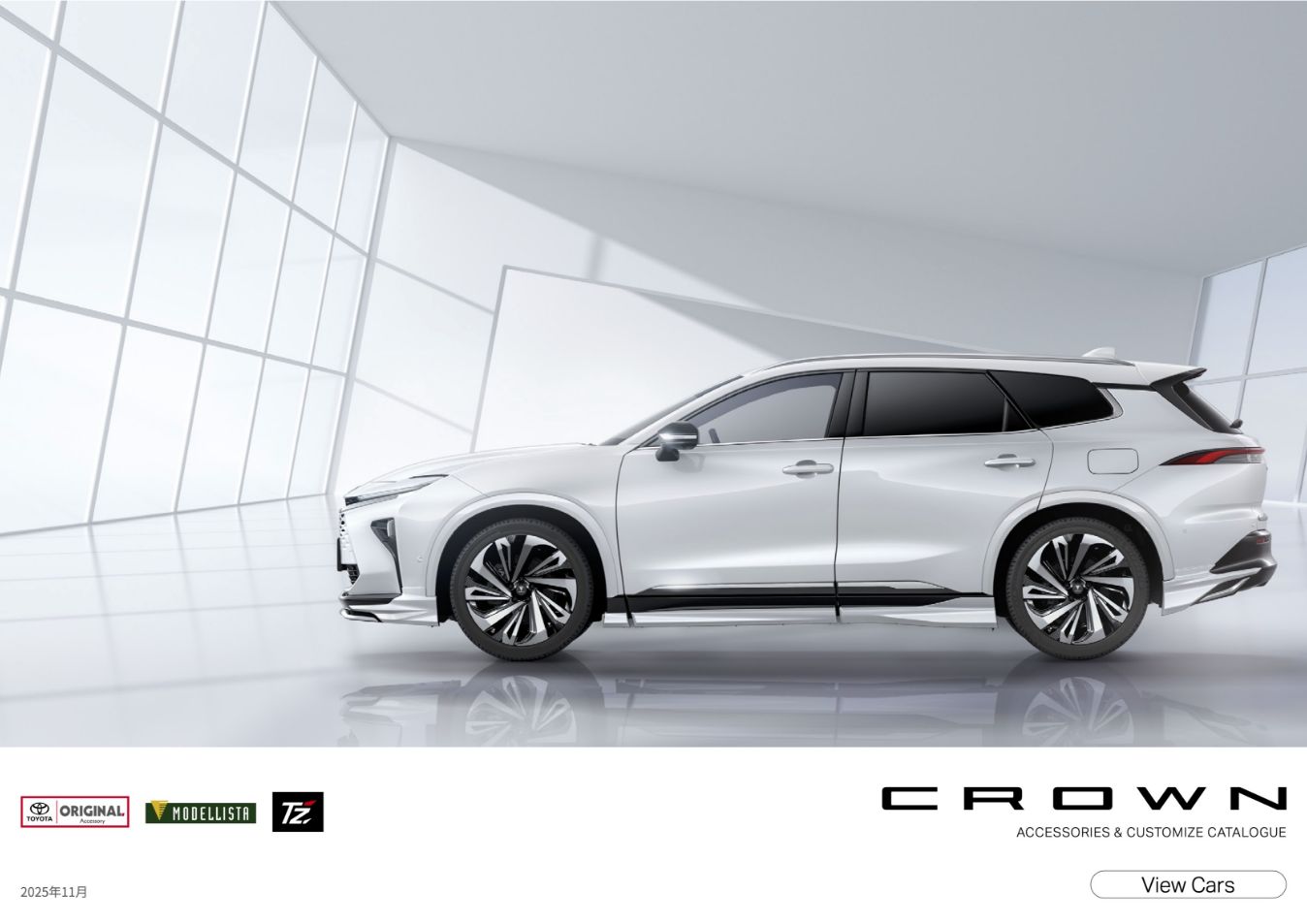 フロントグリルは外板色と統一し、シンプルながらも存在感のあるデザインを実現。バンパー一体型のメッシュパターンは、グラデーション変化する緻密な構成で、クラウンならではの質感を追求しています。水平基調の薄いデイライトがワイド感を強調し、精悍な表情を演出。