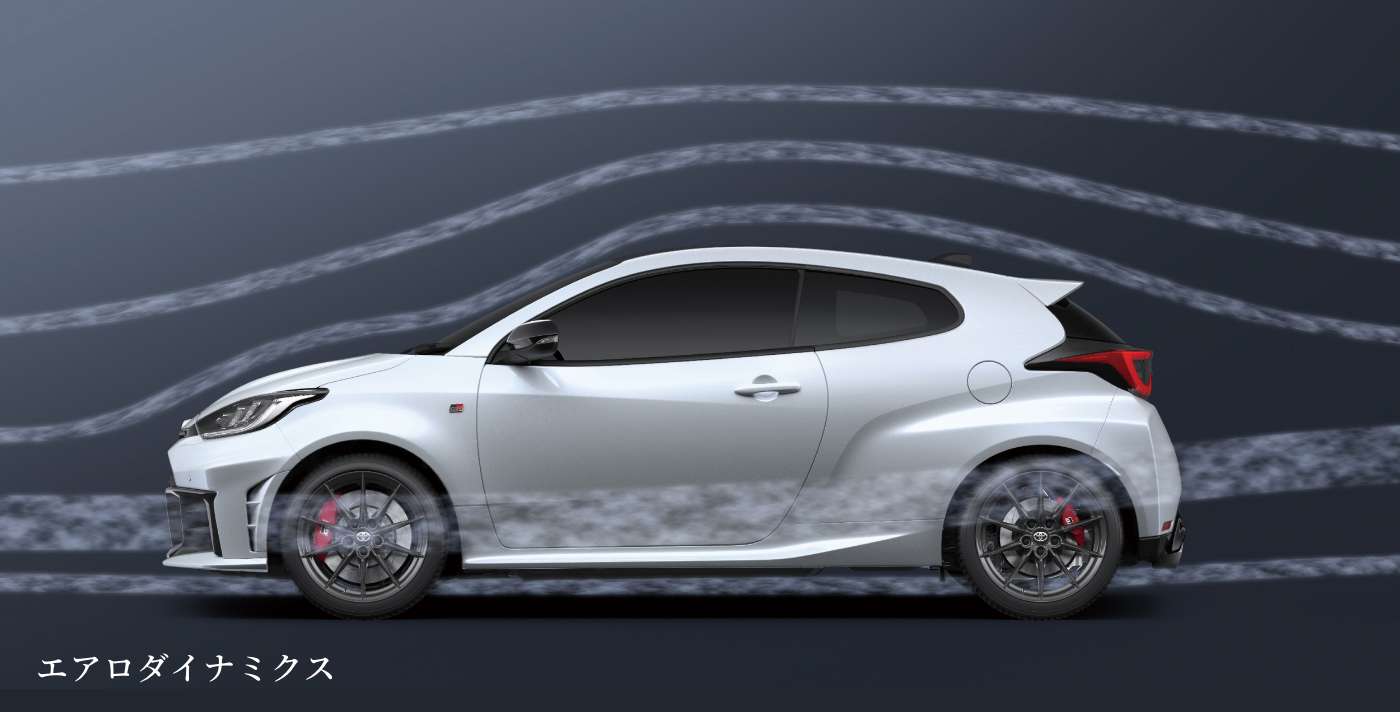 全日本ラリーをはじめとしたモータースポーツからの知見を開発に反映し、空力性能・操縦安定性の向上と共に、意匠面でも目を引く存在感を発揮するGRヤリス