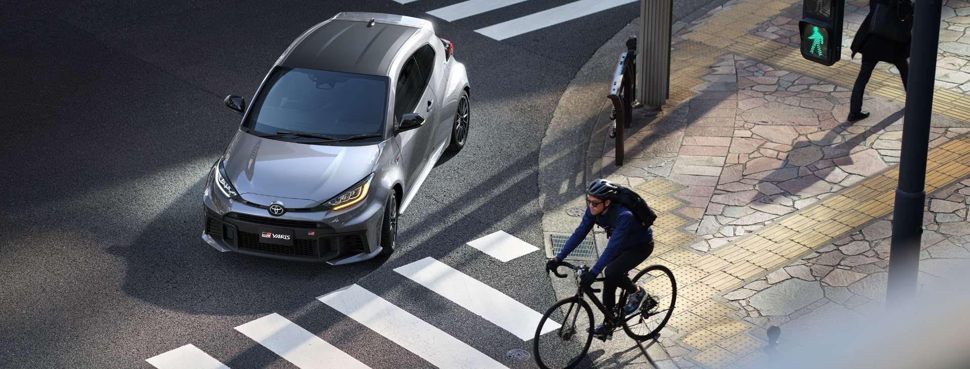 駐車時や低速走行時に、壁などの静止物への衝突のおそれがあるときや、アクセルペダルの踏み間違いなどによる急発進、およびシフトレバーの入れ間違いによる発進時に、センサーが前後進行方向の静止物を検知するとシステムが作動し、衝突を緩和し衝突被害軽減をサポートします。また、後退時に自車の右後方または左後方から接近する車両をレーダーで検知して警告。システムが衝突の危険性があると判断した場合に、ブレーキ制御をすることで接近車両への衝突を緩和し、衝突被害軽減をサポートします。 [RZ “High performance” + Aero performance package、RZ“High performance”、RZの〈GR-DAT(8AT)〉に標準装備]